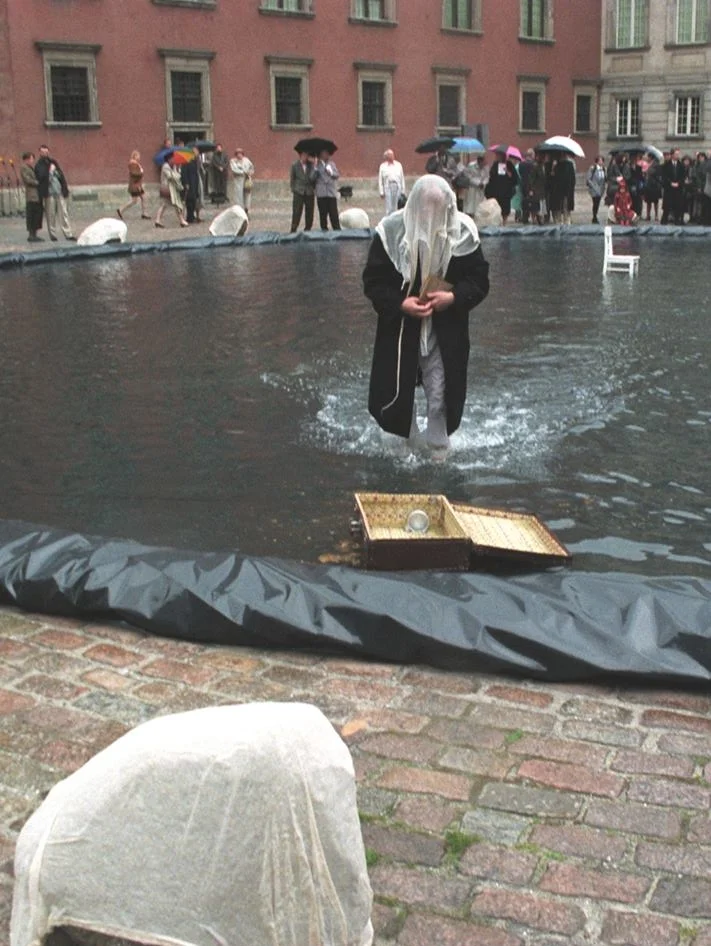 - "Lacrimosa", instalacja przed Pomnikiem Bohaterów Getta, zdjęcia zatopione w lodzie, Warszawa, 2008 r.